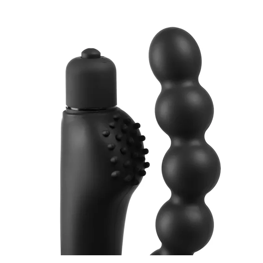 Vibrator anal confectionat din silicon, cu forma curbata si design asemanator unui sirag de bile, pentru o stimulare precisa si intensa. Dispune de sistem intuitiv de comanda plasat la baza si funcioneaza pe baza unei baterii tip AAA, care se achizitioneaza separat.