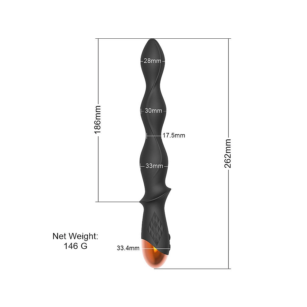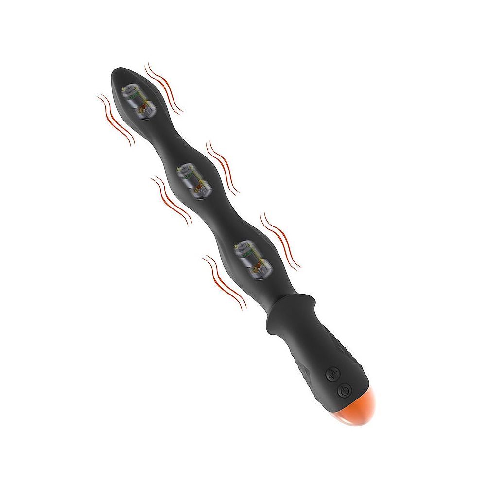 Vibrator realizat din silicon catifelat, ideal pentru stimulare anala. Designul care imita un sirag cu trei bile de dimensiuni diferite, asigura o inserare facila si o stimulare extrem de intensa. Flexibil, este usor de manevrat fiind prevazut cu un maner practic.