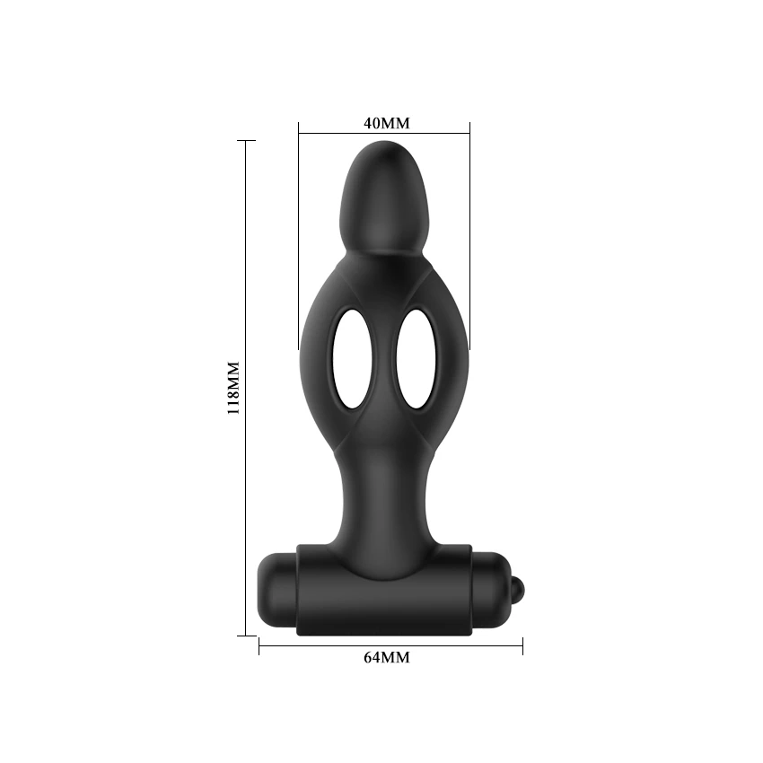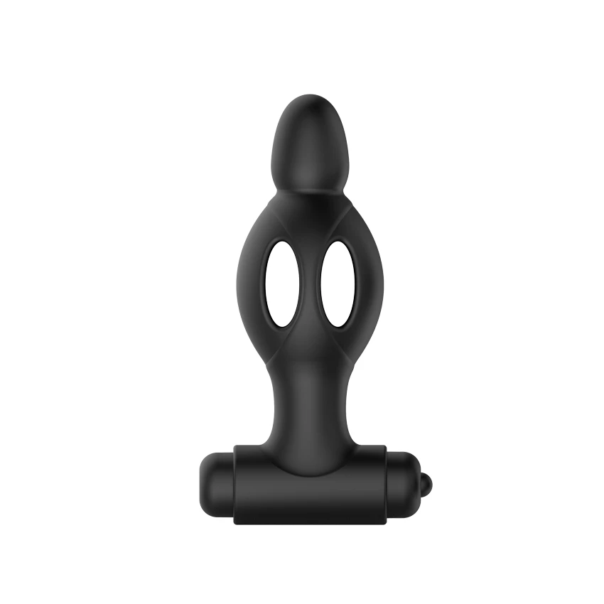 Vibrator anal in forma de dop, cu decupaje in interior, pentru a fi mai usor de inserat.
