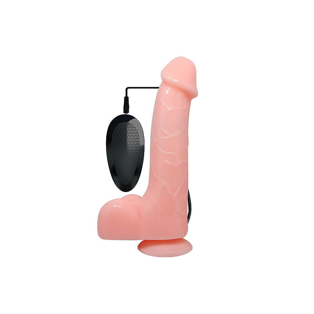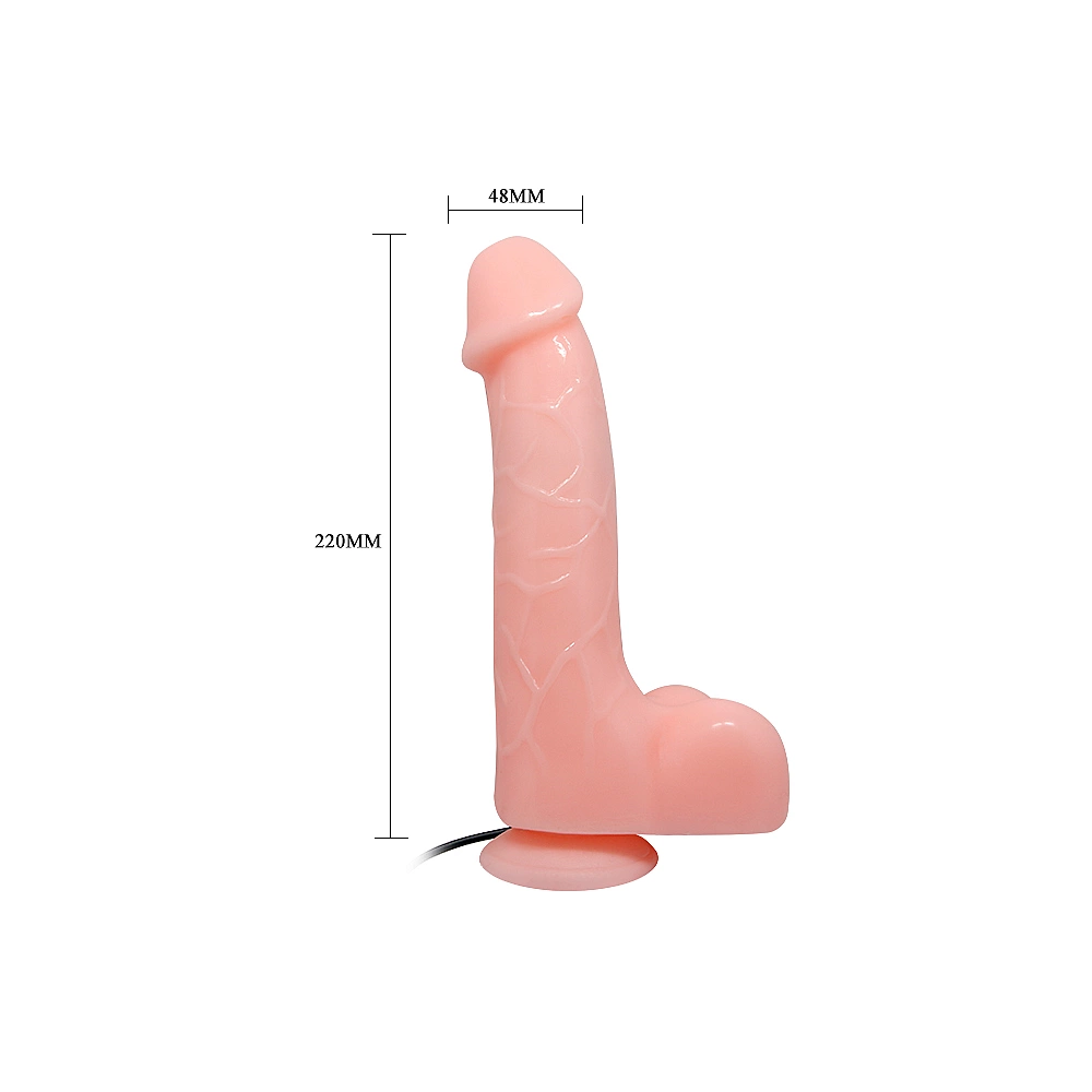 Vibrator cu design realistic, confectionat din material de cea mai inalta calitata, prevazut cu multiple vibratii. Vibratorul dispune de gland bine conturat, vene puternic vascularizate, testicule si o puternica cupa de suctiune la baza. Vibratiile se modifica simplu din telecomanda din dotare.