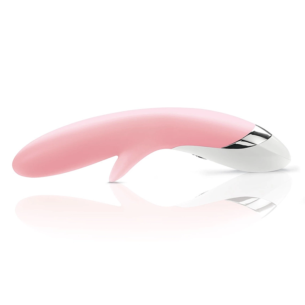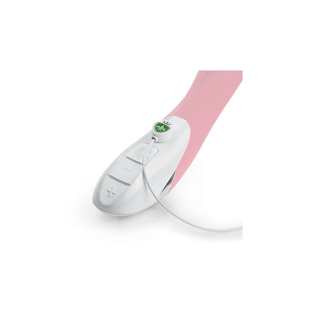 Vibrator de culoare roz, fabricat din silicon de cea mai inalta calitate, cu o forma usor curbata pentru stimularea intensa a punctului G si cu urechiuse pentru stimularea clitorisului.