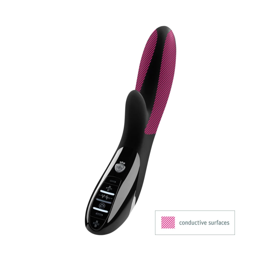 Vibratorul Mystim este prevazut cu 2 motoare, 8 modele de vibratii si 5 nivele de intensitate, precum si cu 5 modele de impulsuri electrice cu 10 nivele de intensitate, ce lucreaza impreuna pentru a va oferi senzatii cat mai intense.