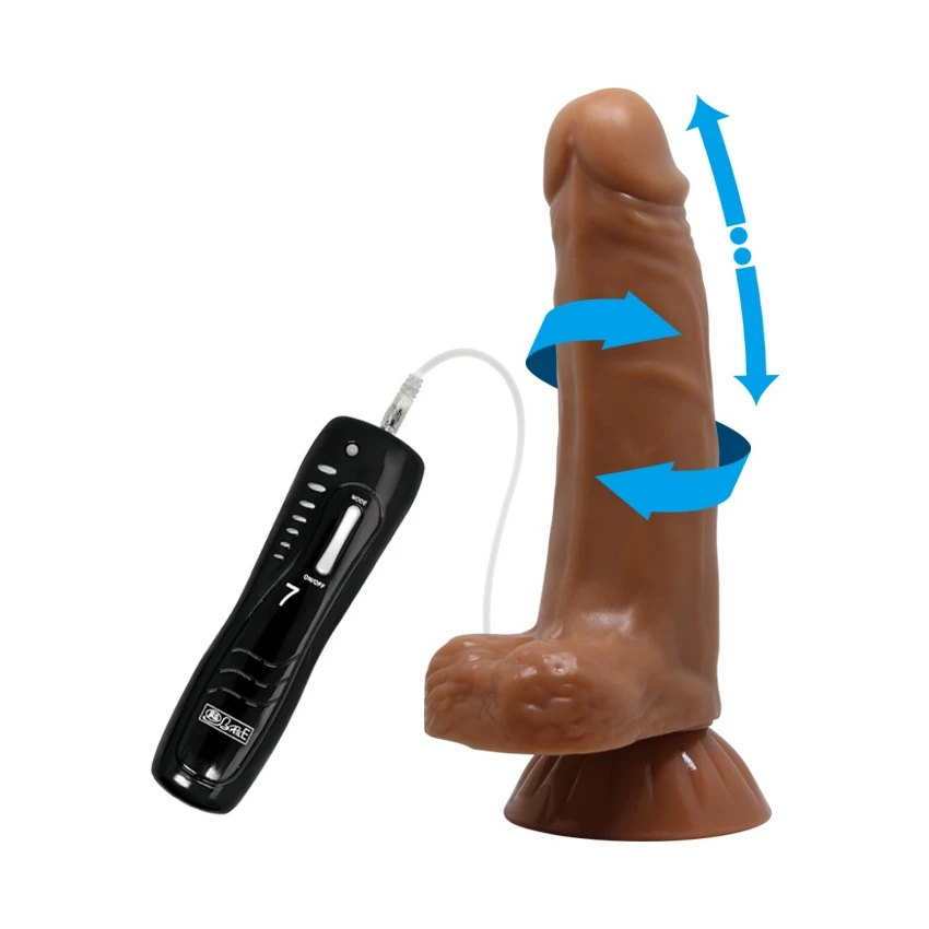 Vibrator cu aspect realistic, dotat cu miscari naturale sus-jos si rotatii. Dispune de gland si vene bine conturate, dar si testicule.