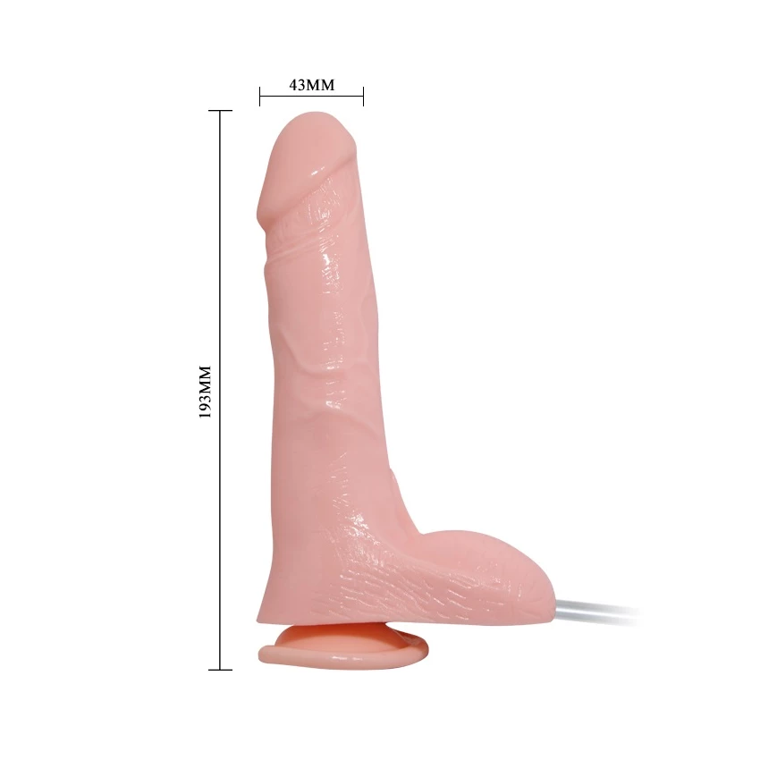 Vibratorul poate fi umplut cu un lichid la alegere, si in momentul in care se exercita presiune pe pompa manuala, acesta va imita procesul de ejaculare.