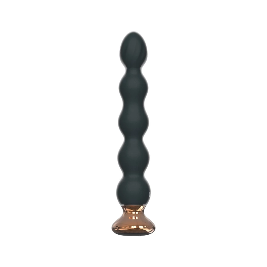 Vibrator anal stilul unui sirag de bile pentru stimulare anala, realizat din silicon cu suprafata catifelata ce se simte foarte placut la atingere. Pentru o stimulare cat mai intensa, bilele au forme rotunde si au diametre diferite, fiind dispuse gradual una sub alta, de la cea mai mica, la cea mai mare. Prima formatiune din varf are suprafata texturata ceea ce ofera un plus de placere.