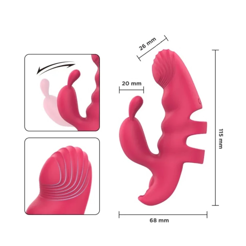 Vibratorul este unul anatomic potrivit pentru stimularea cat mai precisa a zonei intime exterioare. Pentru un plus de versatilitate, jucaria este special creata pentru a ajuta la fixarea ei pe degetul aratator al mainii, oferindu-se astfel usurinta si ergonomie in utilizare.