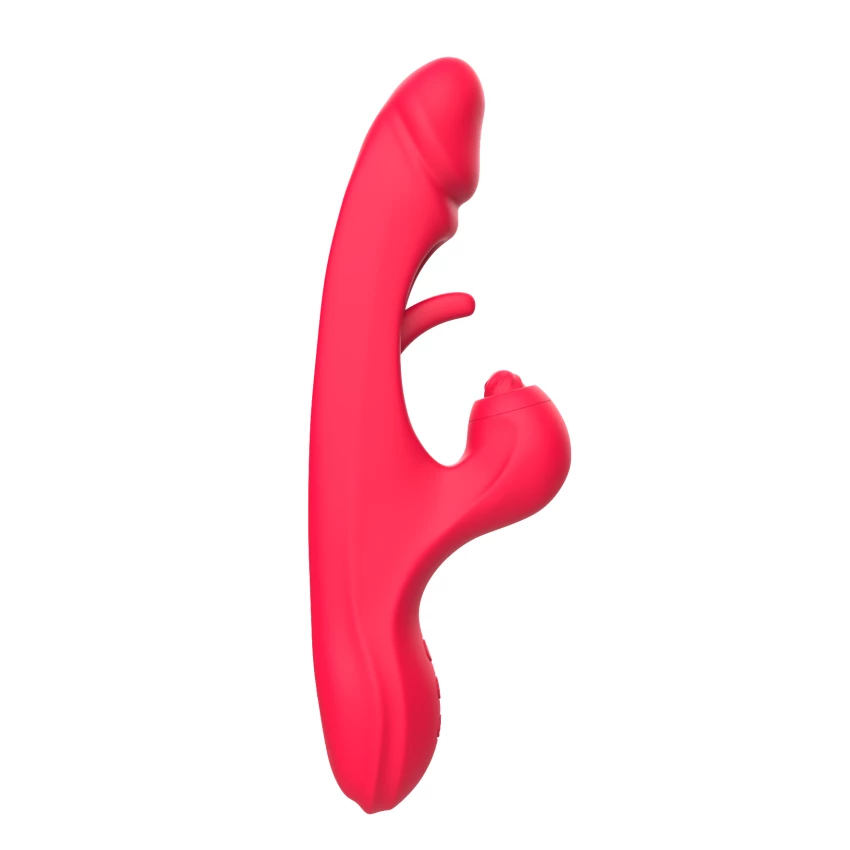 Vibrator rabbit cu multiple functii, creat intr-o nuanta jucausa de rosu, cu forma interesanta si design atragator.  Extremitatea mai mica stimuleaza extrem de intens clitorisul iar cea de-a doua parte este realizata cu suprafata deschisa, fiind perfecta pentru stimulare vaginala.