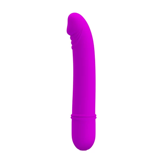 Vibrator fabricat din silicon cu suprafata neteda si catifelata si varf curbat cu aspect realistic de gland.