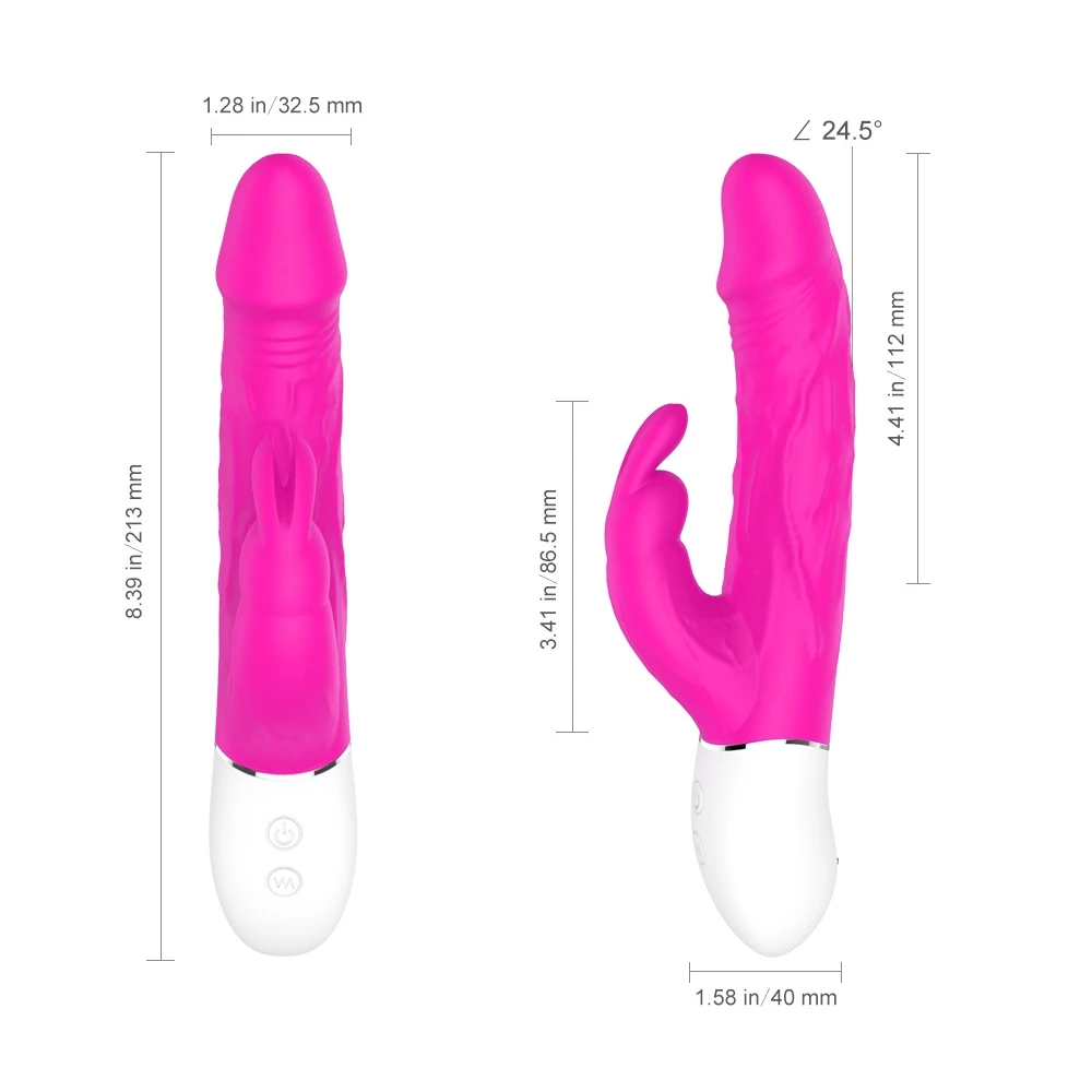 Vibrator rabbit, creat intr-o nuanta jucausa de roz, cu forma interesanta si design atragator. Urechiusele iepurasului exterior stimuleaza extrem de intens clitorisul iar forma usor curbata este perfecta pentru stimularea punctului G.