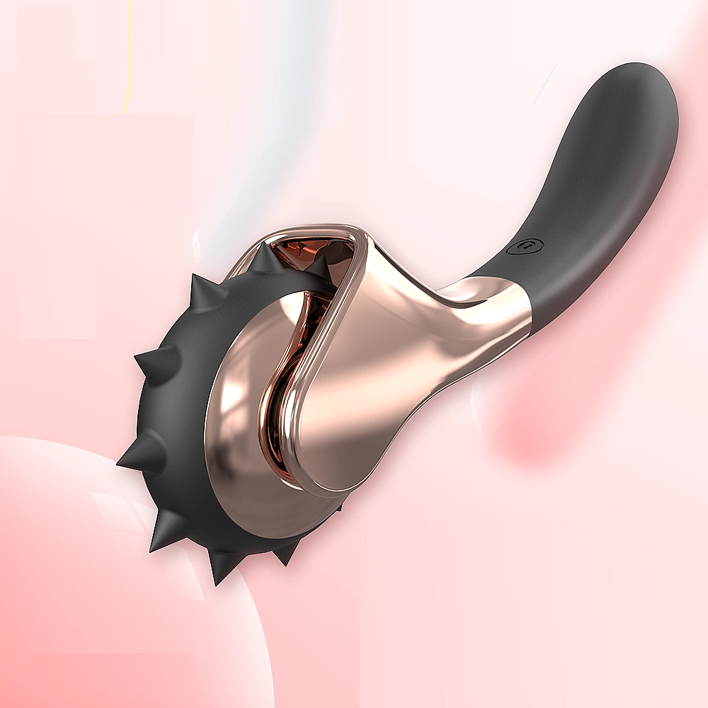 Manerul auriu este prevazut cu o roata zimtata, fiind astfel un accesoriu fetish pentru masaj, care ofera o varietate de senzatii in functie de intensitatea presiunii aplicate pe piele.