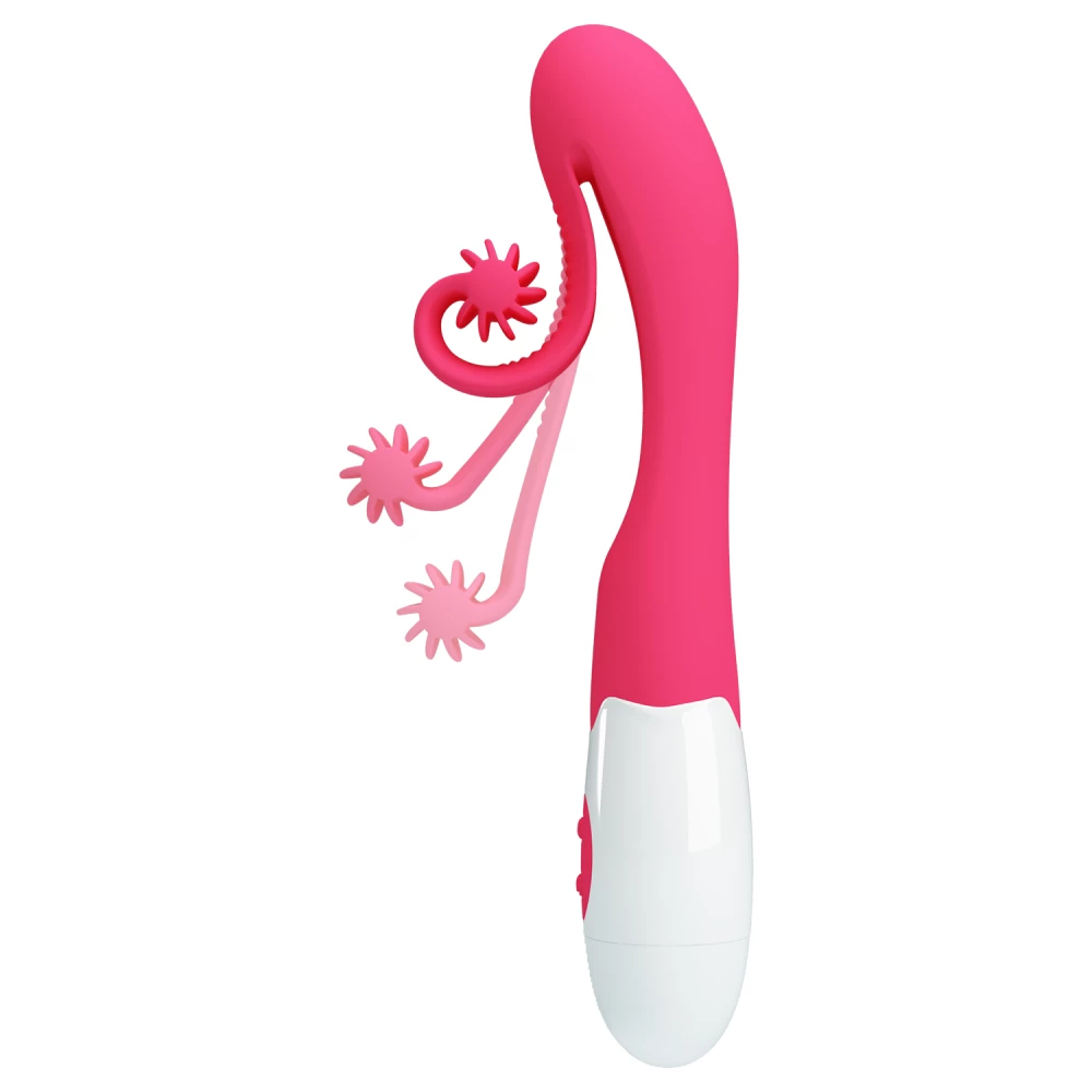 Vibrator inovator de tip rabbit, creat intr-o nuanta jucausa de roz, cu forma interesanta si design atragator. Modelul stimuleaza extrem de intens clitorisul iar forma curbata este perfecta pentru stimularea altor zone erogene.