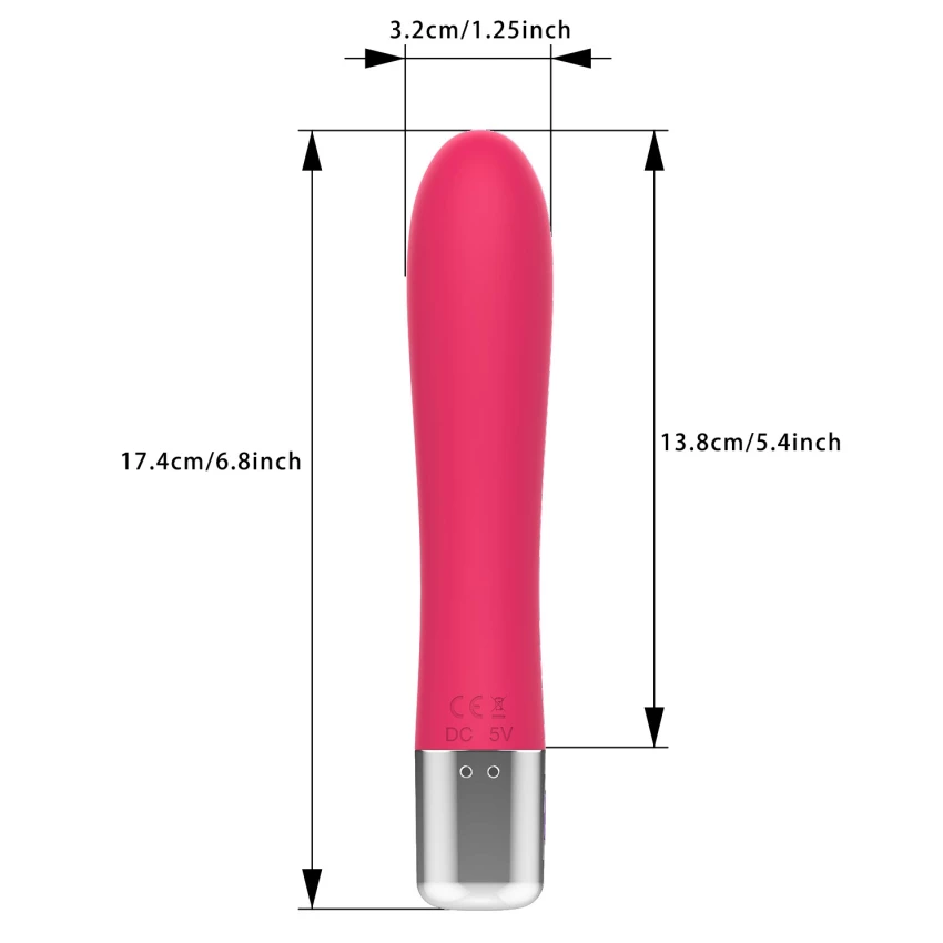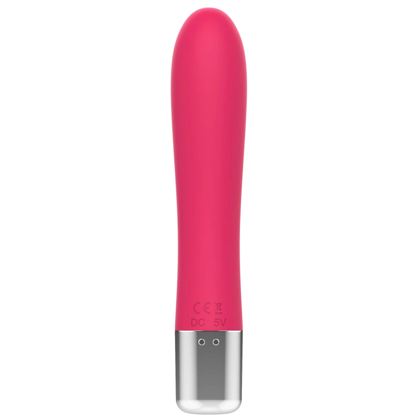 Vibrator clasic, confectionat din silicon fin si placut la atingere, cu o nuanta placuta de rosu romantic. Suprafata este neteda si se simte extrem de matasos si placut la atingere. Varful usor bombat ajuta la stimularea mai intensa a punctului G si ofera totodata si un aspect special intregului ansamblu.