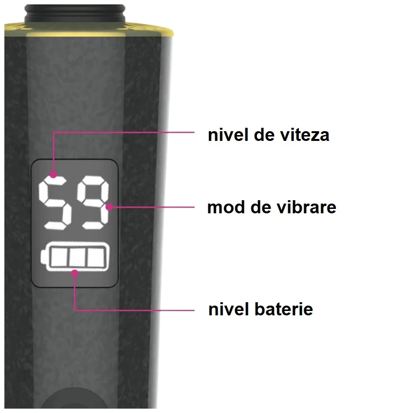 • Panou de afisaj LED unde puteti urmari nivelul bateriei si vibratiile actionate;