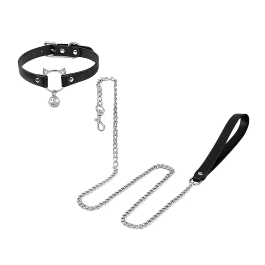 Cele 2 accesorii de tip zgarda si lesa se pot detasa facil fiind unite prin sistemul clasic intuitiv de tip carabina cu inel. Acest sistem faciliteaza prinderea lor si de alte ansambluri din zona fetish, pentru a crea diferite pozitii intime.