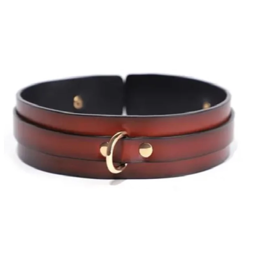 Zgarda Rosy Classic de culoare visinie este un accesoriu fetish cu inel frontal auriu, realizata intr-un design clasic din material fin si placut la atingere. Dispune de inel versatil aplicat in zona de mijloc ce este realizat sub forma literei D, oferind un aspect interesant si captivant ce evidentiaza zona gatului si trasaturile fetei.