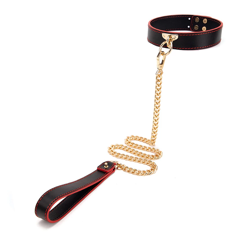 Totodata, zgarda poate fi atasata la lesa din dotare, devenind astfel un accesoriu fetish pentru jocurile de tip BDSM. Lesa este de tip lant lung auriu si dispune de maner stil bucla la capat, astfel incat este usor de manevrat si eventual depozitat.