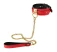 Accesoriu fetish de tip zgarda cu lesa, realizat din material ce imita pielea ecologica, in 3 nuante atractive de rosu romantic, auriu elegant si negru clasic pe interior. Aceste culori ofera o nota sofisticata si glamorous produsului, facandu-l potrivit pentru persoanele iubitoare de accesorii stralucitoare si care ies in evidenta in general.