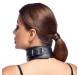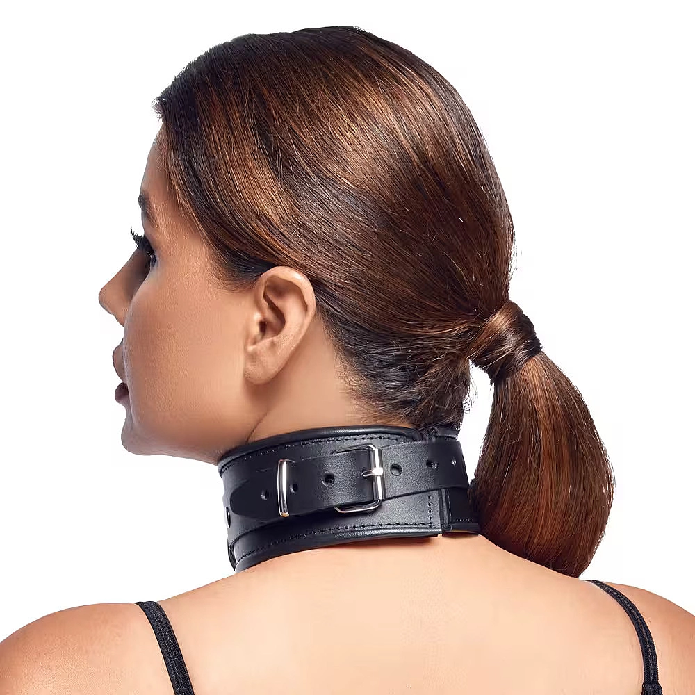 Accesoriu fetish unisex de tip zgarda din piele naturala, realizat intr-o culoare clasica de negru, culoare ce ofera o nota eleganta si rafinata intregului ansamblu. Se simte extrem de fin si matasos la contactul cu pielea, avand un material plusat, moale si catifelat pe portiunea dinauntru, astfel oferindu-se o purtare confortabila.